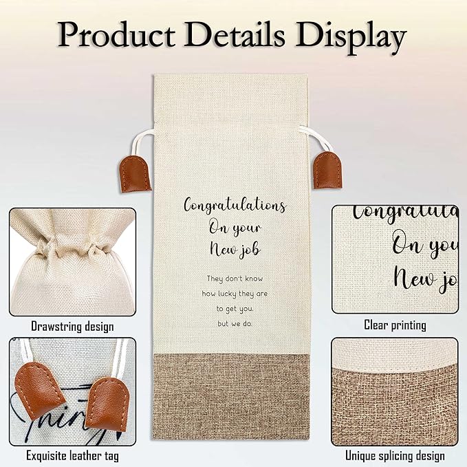 New Job Gifts Wine Bag, New Job Wine Champagne Bag, Cotton Linen Wine Gift Bag With Drawstring, Retirement, New Beginning Gifts For Leaving Coworker, Going Away Work Friend-39