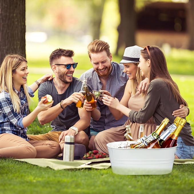 - 【MULTI SCENARIO APPLICATION】- The beverage tub is a versatile accessory that can be used in a variety of settings. Whether you're camping in the great outdoors, having a picnic with family, or hosting a formal dinner party, the metal tub can fit in seamlessly.