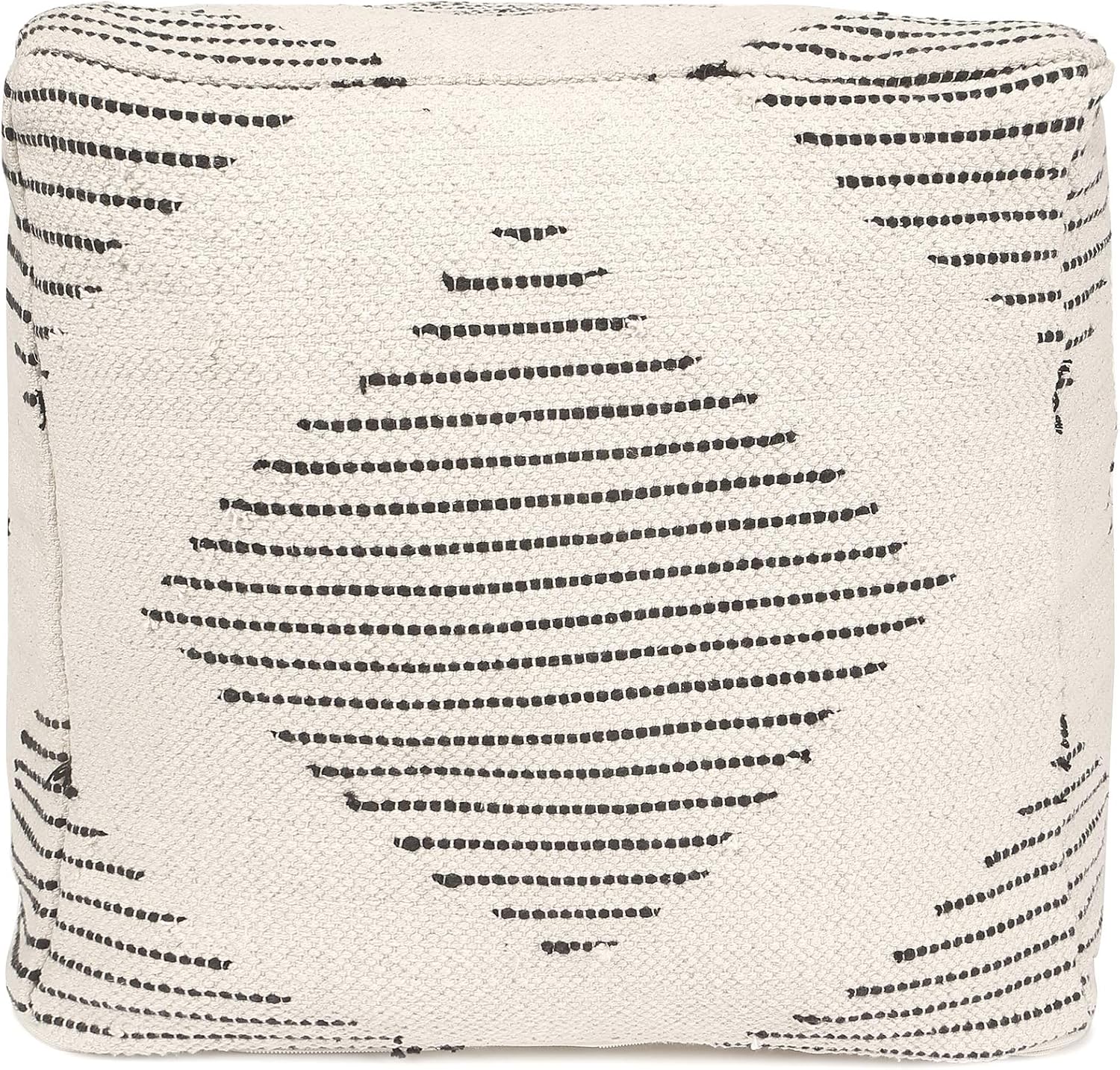 REDEARTH · Tufted Pouf Ottoman with Filler Textured Storage Cube Bean Bag Pouffe Footrest for Living Room, Bedroom, Nursery, Kidsroom; 100% Cotton (17.5"X17.5"X17.5", Loom Story 3 Natural Black)