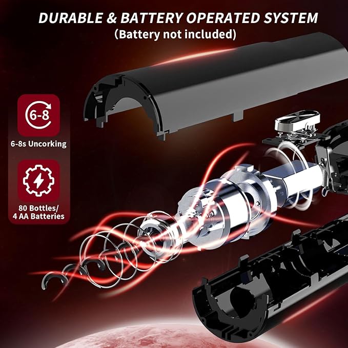 - Effortless Opening: Cordless electric wine opener easily removes corks with the push of a button.