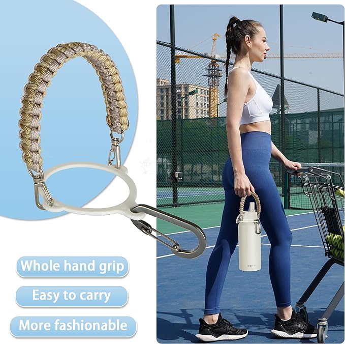 - Paracord Handles & Strap:40 oz water bottles Equipped with high quality colorful nylon braided Paracord Handles, bid farewell to the uncomfortable grip feeling, make the lifting more relaxed! Insulated 40 oz water bottle also comes with a 70.86 inches retractable strap, which can be worn directly on the body to free your hands and allow you to ride, climb, hike, rock climb and surf freely.