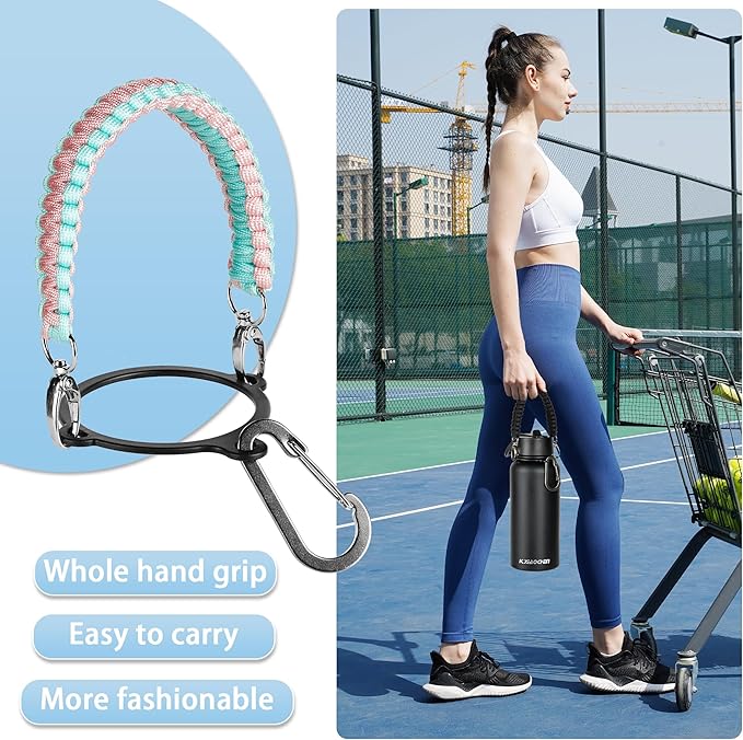 - Paracord Handles & Strap:40 oz water bottles Equipped with high quality colorful nylon braided Paracord Handles, bid farewell to the uncomfortable grip feeling, make the lifting more relaxed! Insulated 40 oz water bottle also comes with a 70.86 inches retractable strap, which can be worn directly on the body to free your hands and allow you to ride, climb, hike, rock climb and surf freely.