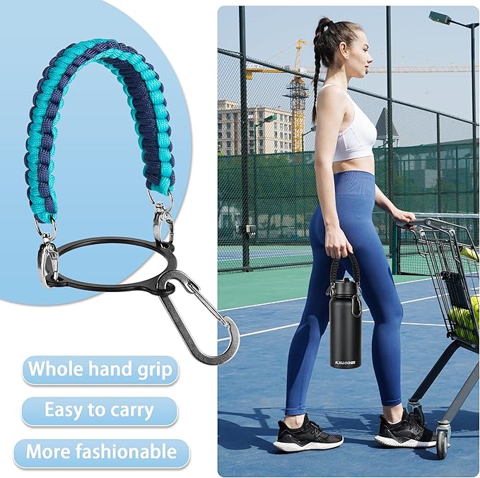 - Paracord Handles & Strap:40 oz water bottles Equipped with high quality colorful nylon braided Paracord Handles, bid farewell to the uncomfortable grip feeling, make the lifting more relaxed! Insulated 40 oz water bottle also comes with a 70.86 inches retractable strap, which can be worn directly on the body to free your hands and allow you to ride, climb, hike, rock climb and surf freely.