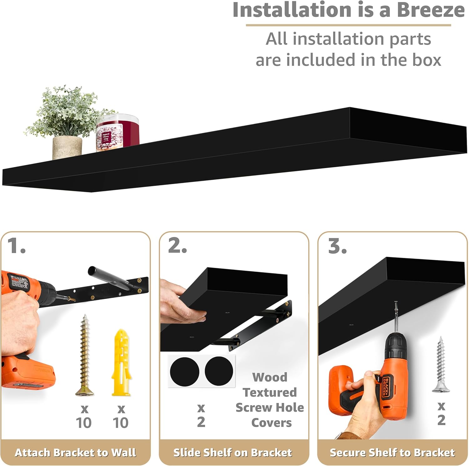 Sorbus Floating Shelves for Wall - 35 Inch Long Bathroom Shelves, Wall Decor for Bedroom, Kitchen, Living Room & Book Storage - Mounted Floating Shelf with Invisible Brackets (Black, 2 Pack)