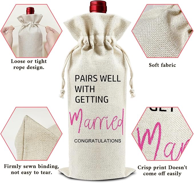 Pairs Well With Getting Married - Gifts for Newlyweds Wine Bags, 1 PC Reusable Drawstring Burlap Wine Bottle Bags, Wedding Gifts for Bride Groom, Wine Gift Bag Wine Accessories -34
