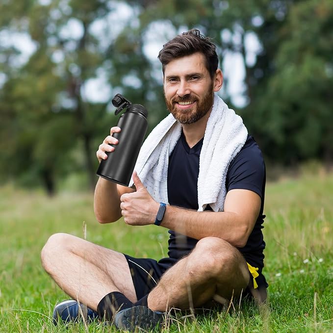 - 3 Capacities: This water bottle is available in 3 capacities: 32oz, 40oz, and 64oz, providing options to suit your preferences. Catering to your needs in various scenarios such as outdoor activities, sports, fitness, off-road adventures, camping, and office.