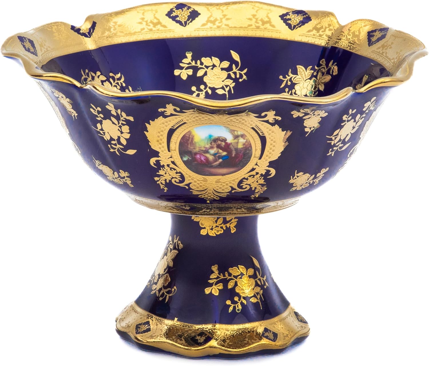 - Elegant Vintage Design: Perfectly crafted for your serving collection, the royalty porcelain blue fruit bowl on a stand (8 inch width x 6 inch height) adds a touch of vintage decor to any home, making it a stunning kitchen table centerpiece