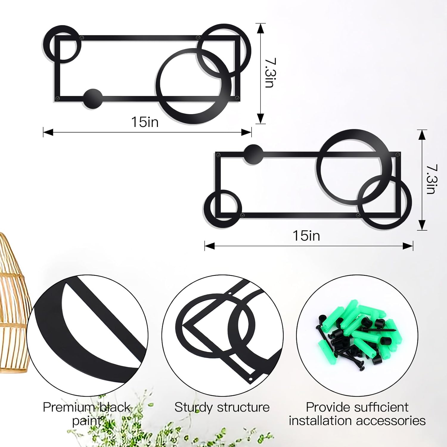 OYEFLY 2 Pcs Metal Abstract Wall Art,Modern Geometric Decor (Black, style 2)