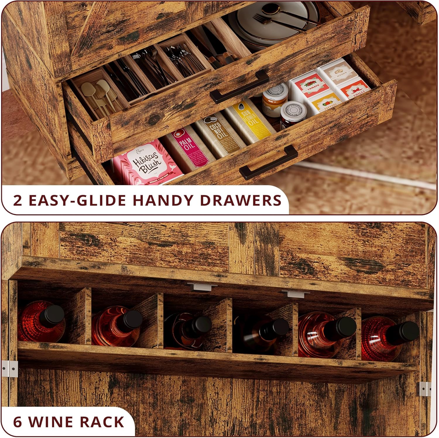 - Accessible Storage: With barn doors for a rustic touch, this storage cabinet with doors and shelves provides easy access to kitchen essentials, including pantry shelves and more, making it a practical choice for your kitchen storage cabinets requirements