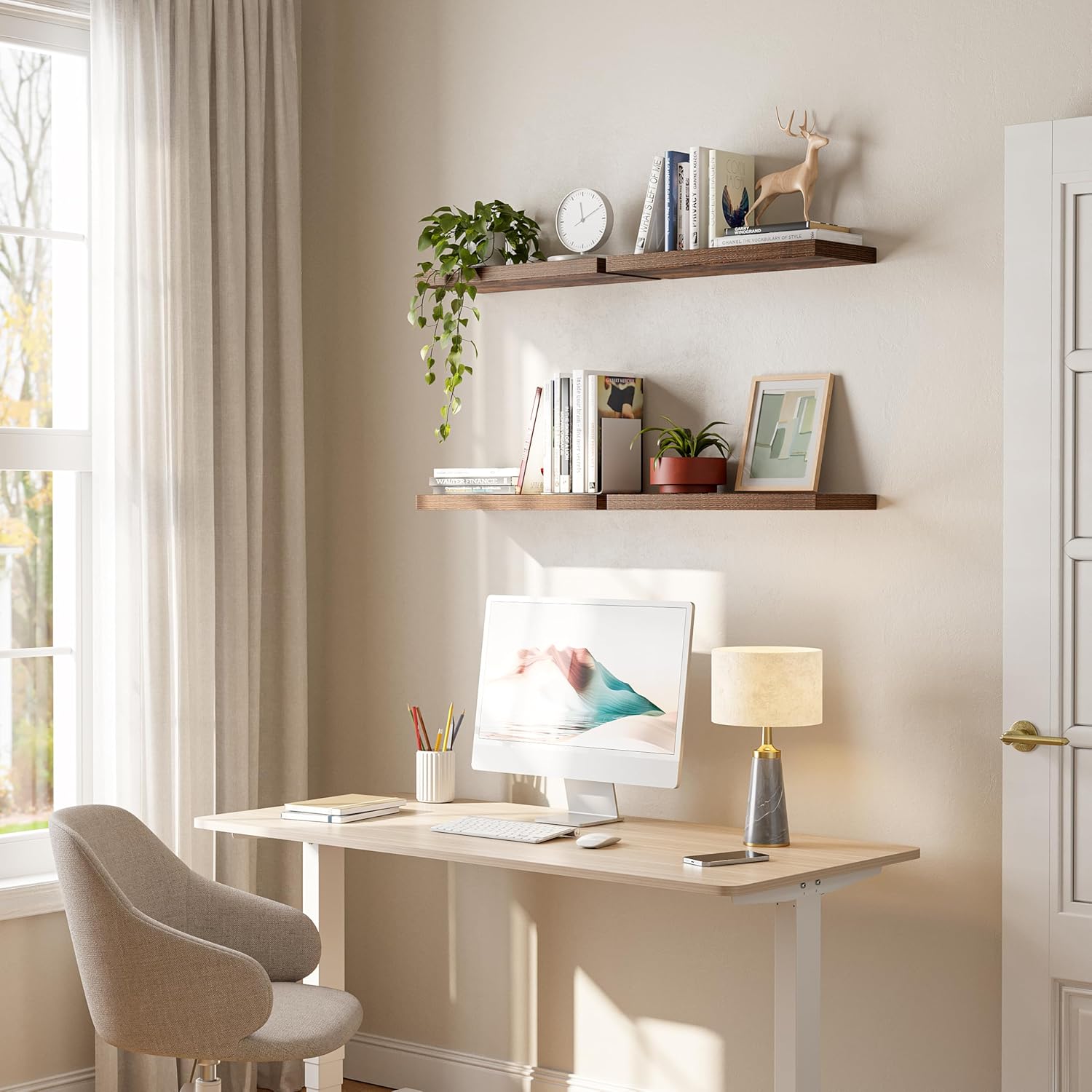 - Set of 4--This set includes four floating shelves, allowing you to create a cohesive look throughout your home. Use them all together or spread them out across different rooms for a coordinated and organized space.