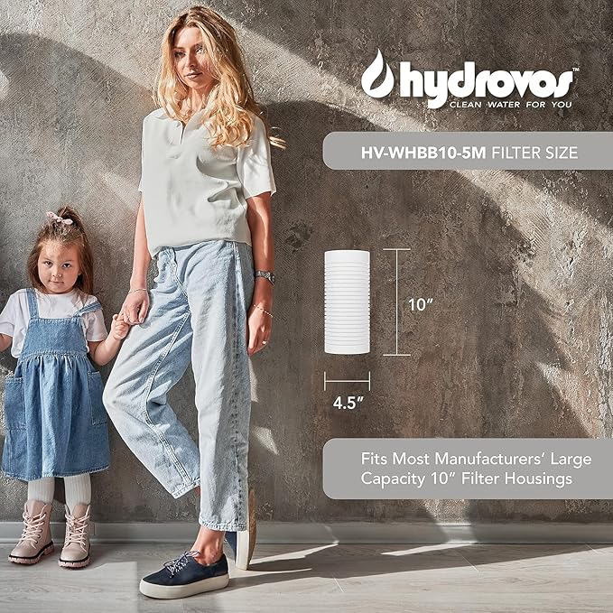 4.5 x 10 Inch Large Capacity Whole House Water Filter, NSF 42 Certified 5 Micron Sediment Filtration, Pack of 4