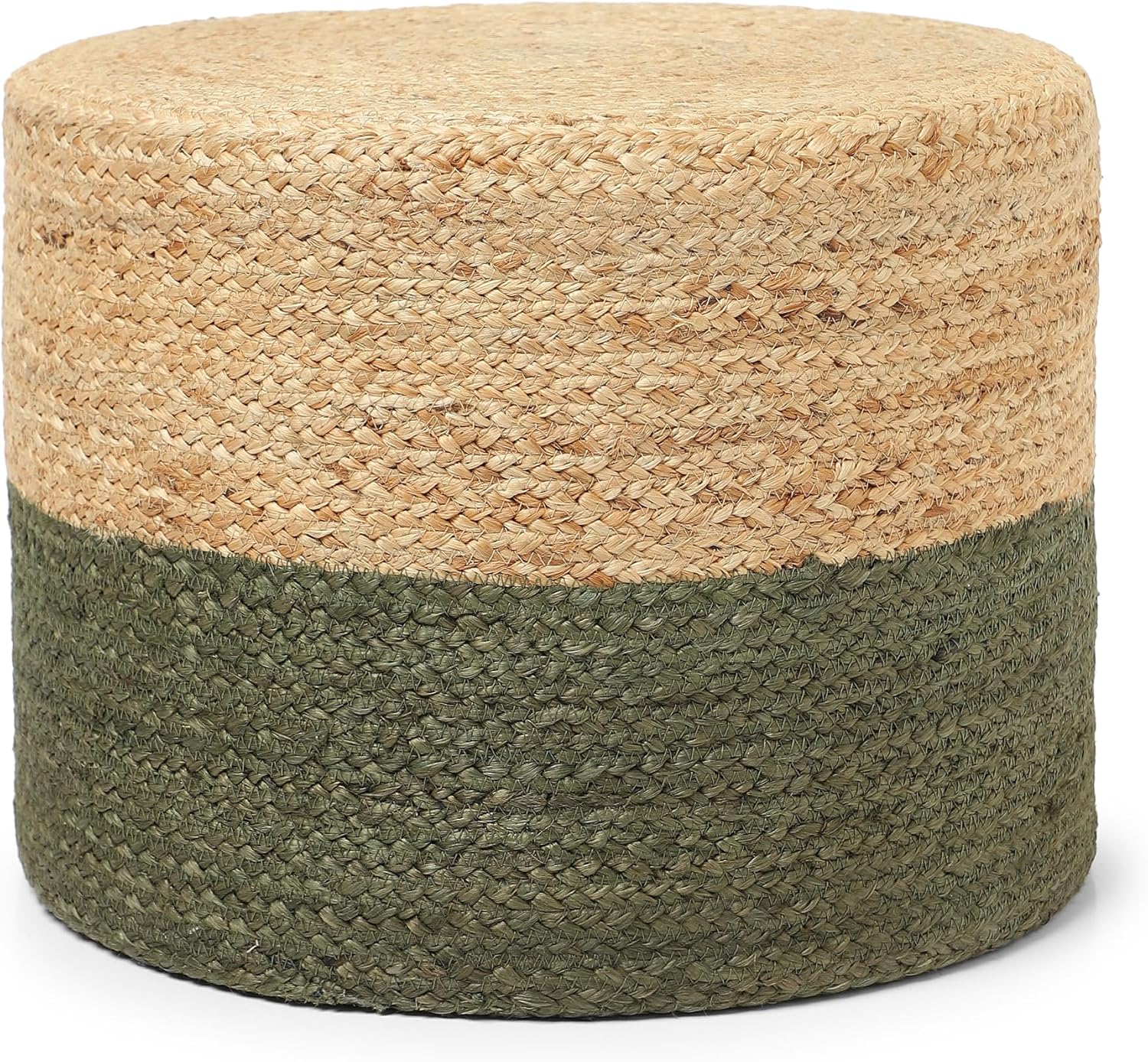 REDEARTH · Cylindrical Pouf Foot Stool Ottoman - Jute Braided Pouffe Poof Accent Sitting Footrest for Living Room, Bedroom, Nursery, Patio, Lounge & Other Rooms (Natural Olive, 18"x18"x14")
