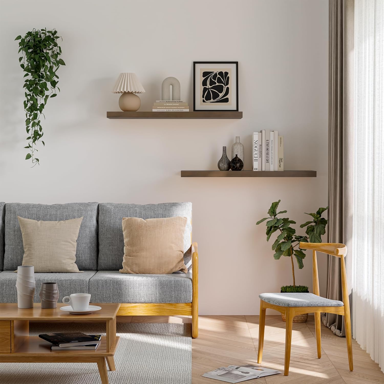- Premium Wooden Floating Shelves -Unlike others, they are beautifully-finished, fantastic-smelling solid pine,and they are handcrafted out of finest solid pine wood measuring 36" x 8" x 1.38",revealing its own character of knots and natural wood grain, making each ledge a little different but equally stunning.