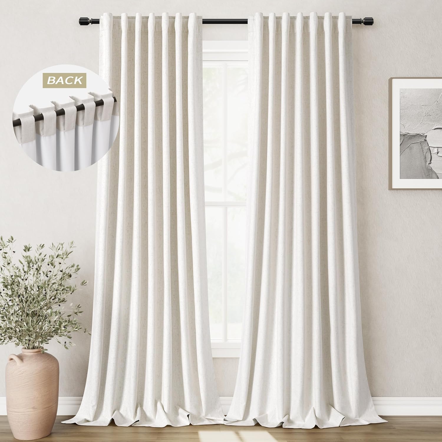 100 Inch Black Out Curtains 2 Panels Set Back Tab Thermal Insulated Natural Linen Textured Blackout Curtains Noise Reducing Cream Colored Neutral Living Room Darkening Window Drapes Pleated 52x100