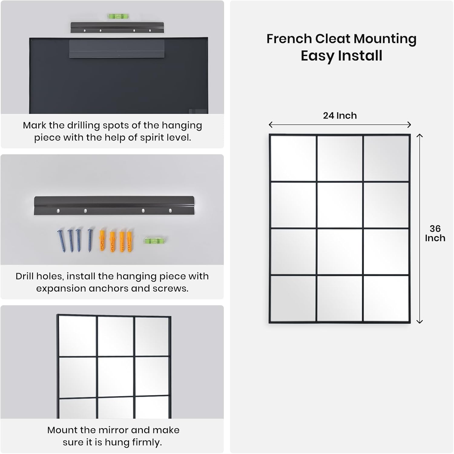 - Windowpane Wall Mirror: 24 X 36 Inch wall mirror creates a wider visual space for you. High definition mirrors experience a clear and accurate reflection, move light around and create the illusion of depth and space