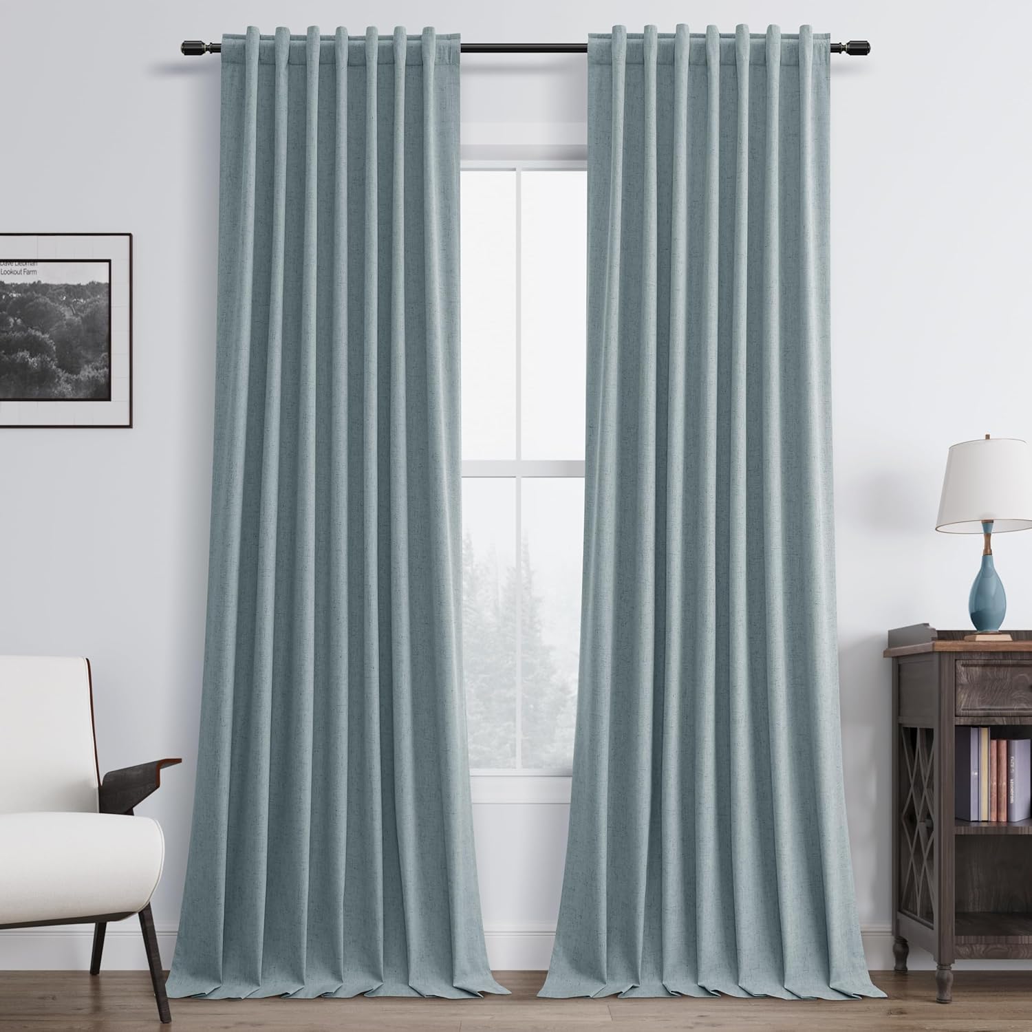 - Thermal Insulated Room Darkening Curtains: The blackout curtains with 300GSM high-density linen blend fabric block out the heat in summer and cool air in winter while sunlight blocking and soundproof. Provide a easy and comfortable home.