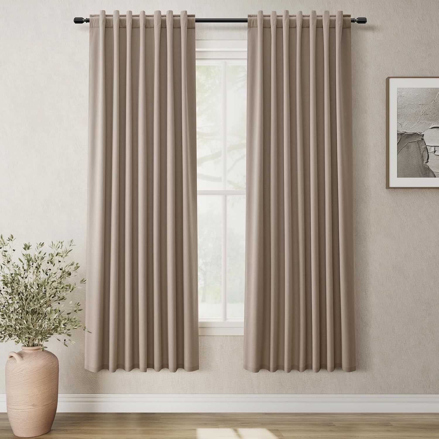 BOODII Linen Blackout Curtains for Bedroom 72 Inch Length 2 Panels Set Room Darkening Curtains Light Brown Black Out Curtain Neutral Thermal Insulated Living Room Nursery Drapes Back Tab 52x72