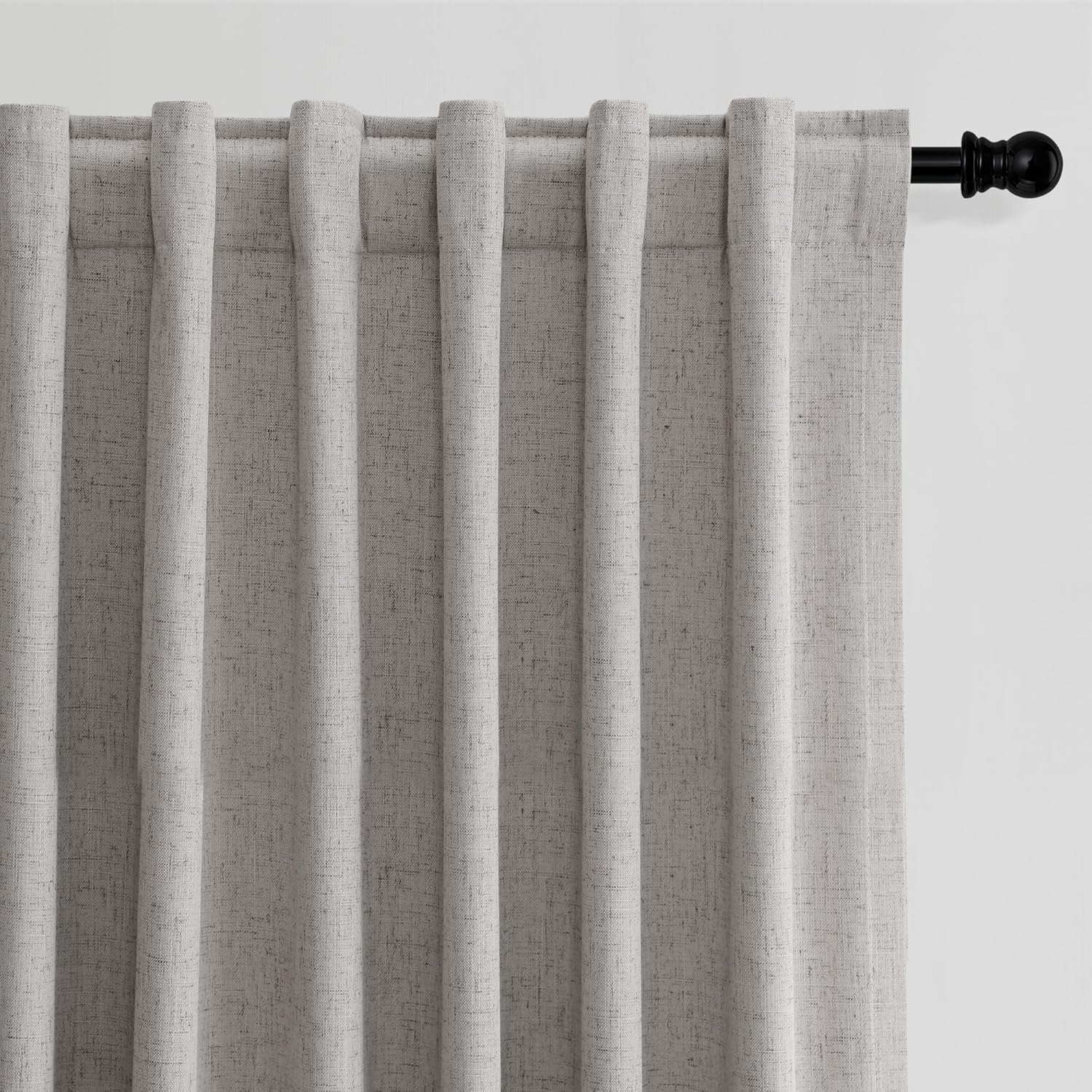 - 3 Hanging Options: Differ from the traditional curtains with grommet, BOODII linen curtains with back tab and rod pocket can full block sunlight fully. (1) Using the back tabs design to create an elegant pleated look and sit closer to the wall than traditional ring curtains, which helps to block out more sunlight; (2) Using rod pocket for a classic effect; (3) Using clip rings on track system or curtain rod, slide open/closed easily (clip rings are not included).