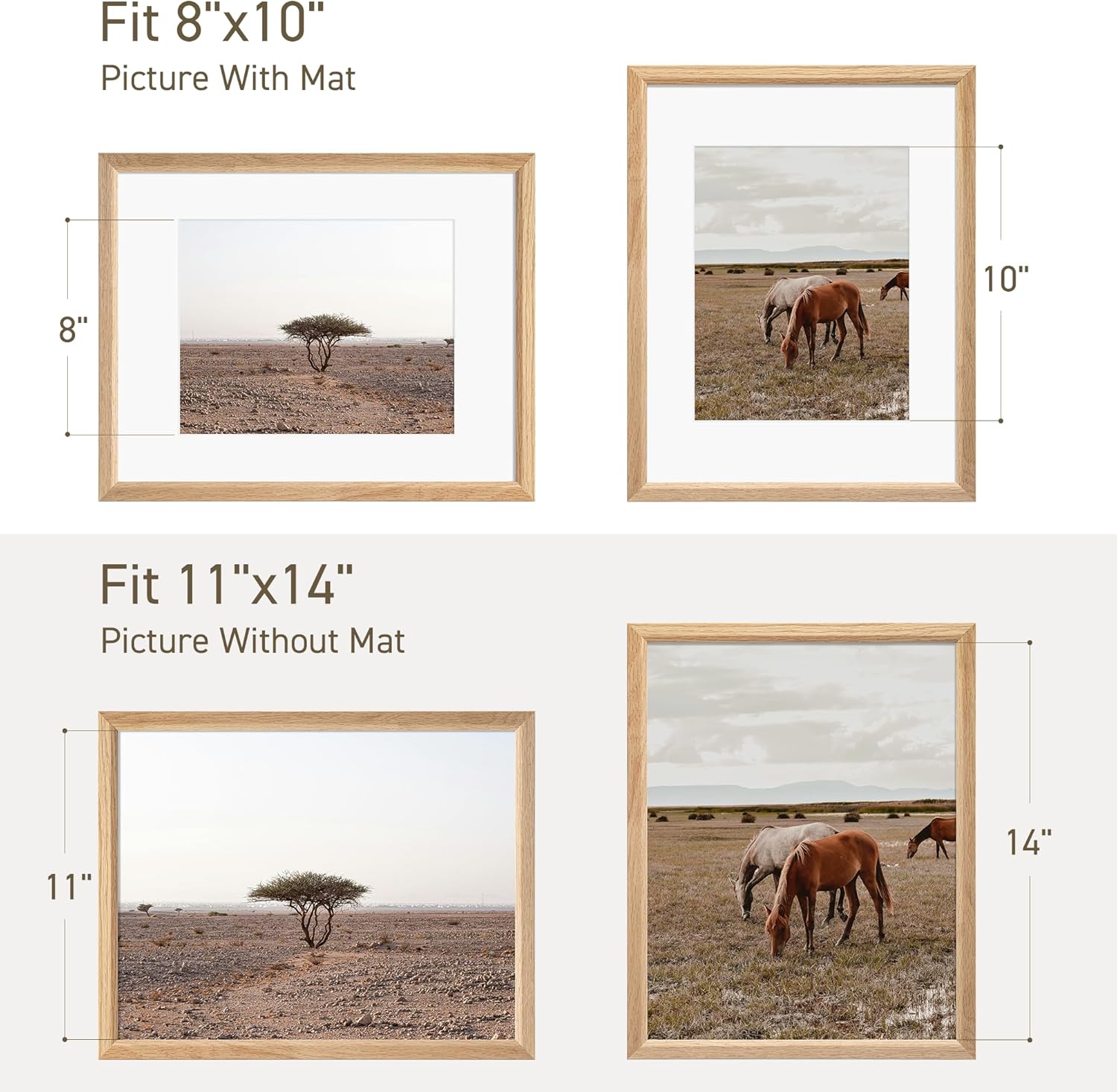 11x14 Picture Frame Natural Solid Oak Photo Frames with 8x10 Removable Mat Wall Hanging Large Handcrafted Frame with HD Plexiglass Wall and Tabletop Display Large Poster Frame