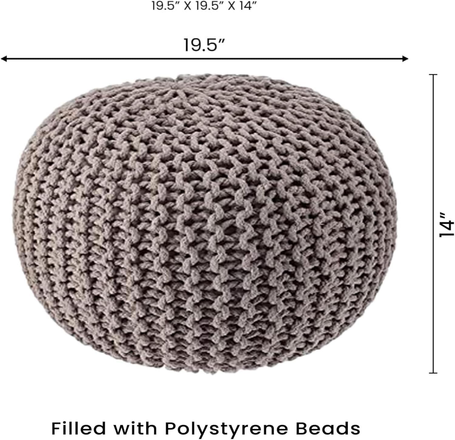 REDEARTH Round Pouf Foot Stool Bean Bag Ottoman - Hand Knitted Boho Pouffe - Home Decor Poof - Stuffed Foot Rest for Living Room - Nursery - Bedroom - Patio (19.5"x19.5"x14") - Taupe