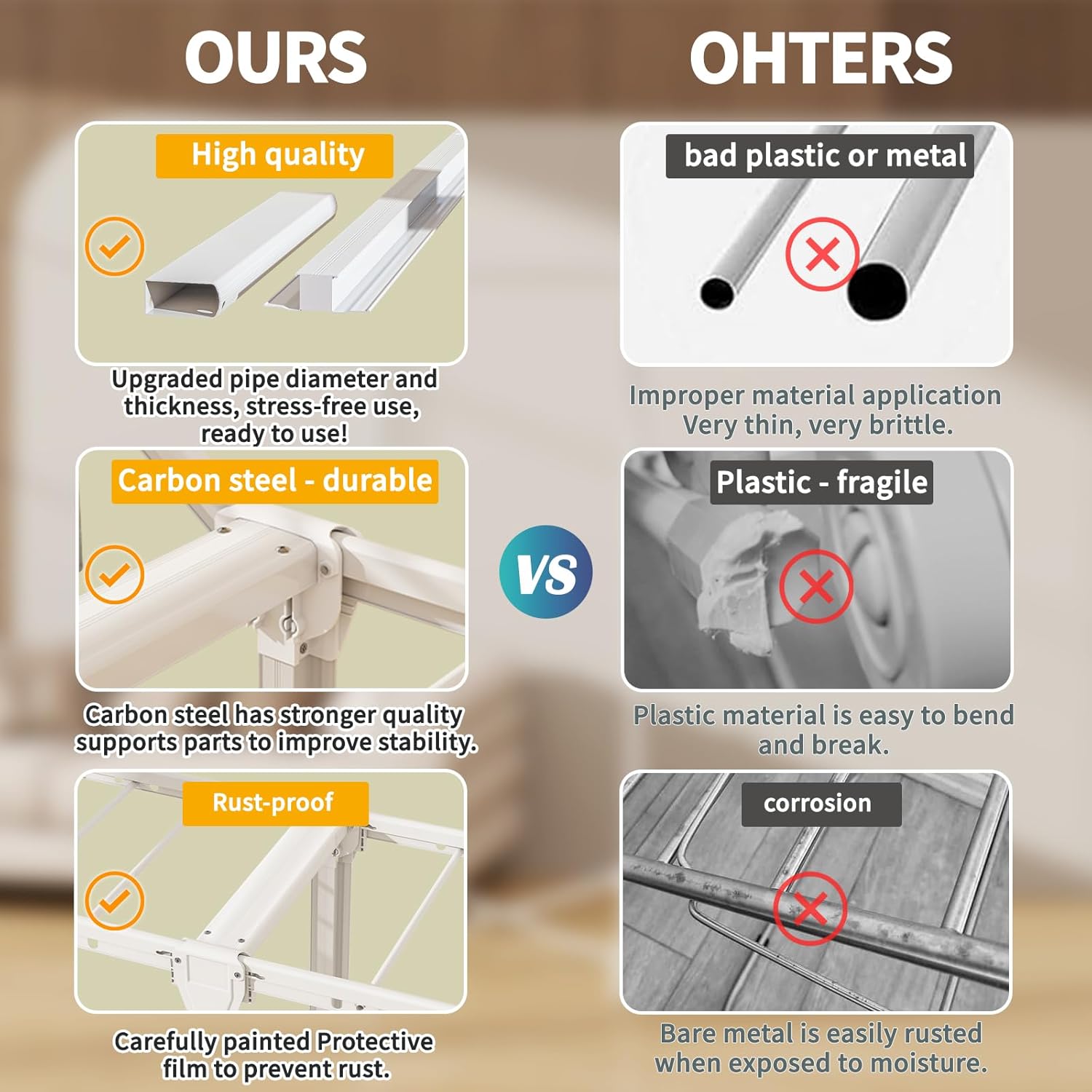 - 【High-quality materials】High-strength aluminum alloy clothes drying rack, designed for indoor and outdoor versatility, weather-resistant aluminum frame can withstand moisture, rain or sun, perfect for balcony, terrace, RV or indoor drying on rainy days. Its durable structure ensures it can withstand heavy loads without affecting its stability.