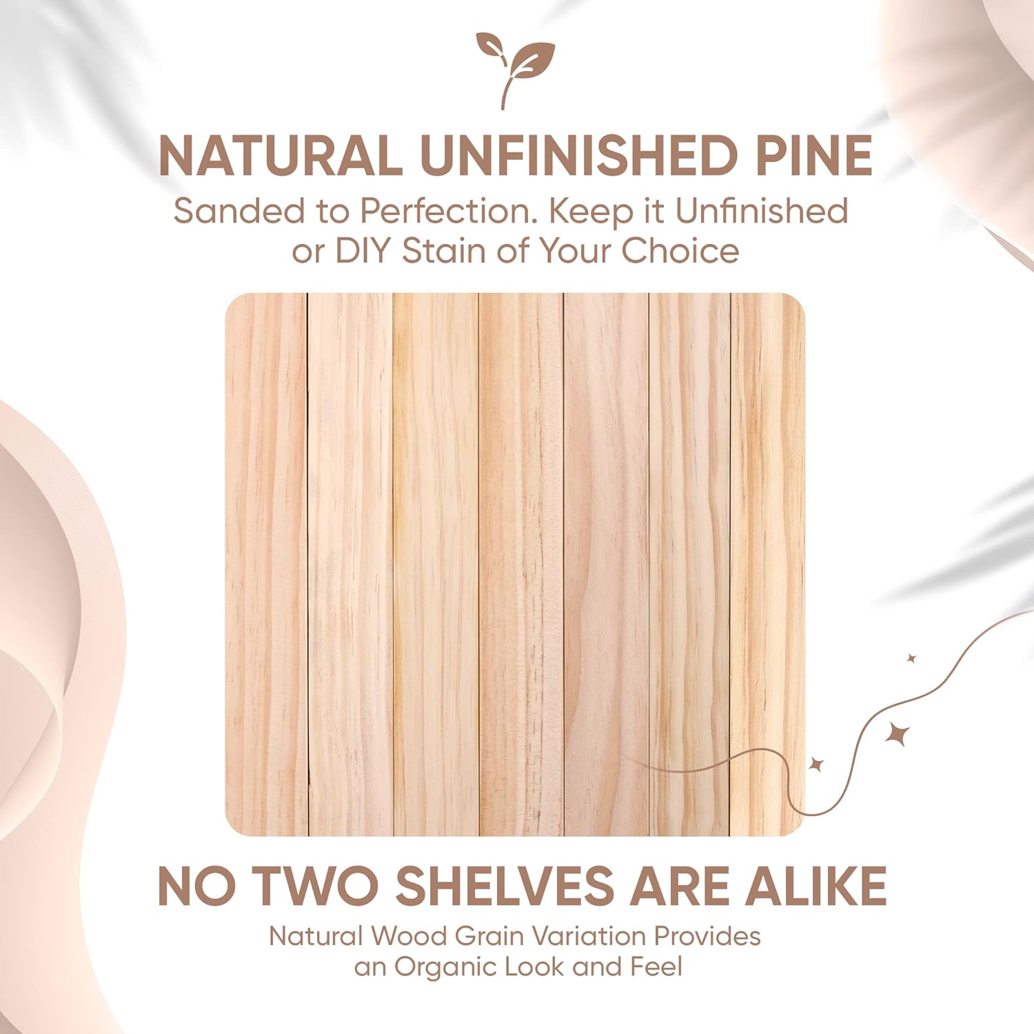 - AUTHENTIC WOOD GRAIN - Enjoy the timeless elegance of real wood. Handcrafted from the finest 1.75" Thick natural pine wood measuring 18" Wide x 6.5" Deep x 1.75". Our shelves highlight the inherent charm and durability of high-quality wood. Each Shelf reveals its unique character of knots and natural wood grain; each ledge is a little different but equally stunning.
