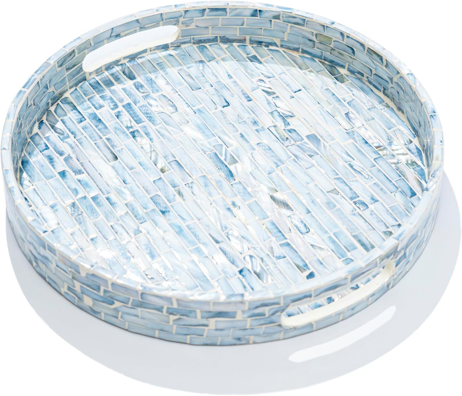 - STYLISH FLORAL TRAYS with the great workmanship by Vietnamese artisans, flawlessly finished with strong wood core and blue floral pattern well-sorted MOTHER OF PEARL SHELLS inlayed on the surface creates an elegant handmade centerpiece to brighten your decoration, best matches any beach/coastal nauticaNew Home Gifts For Homel theme.