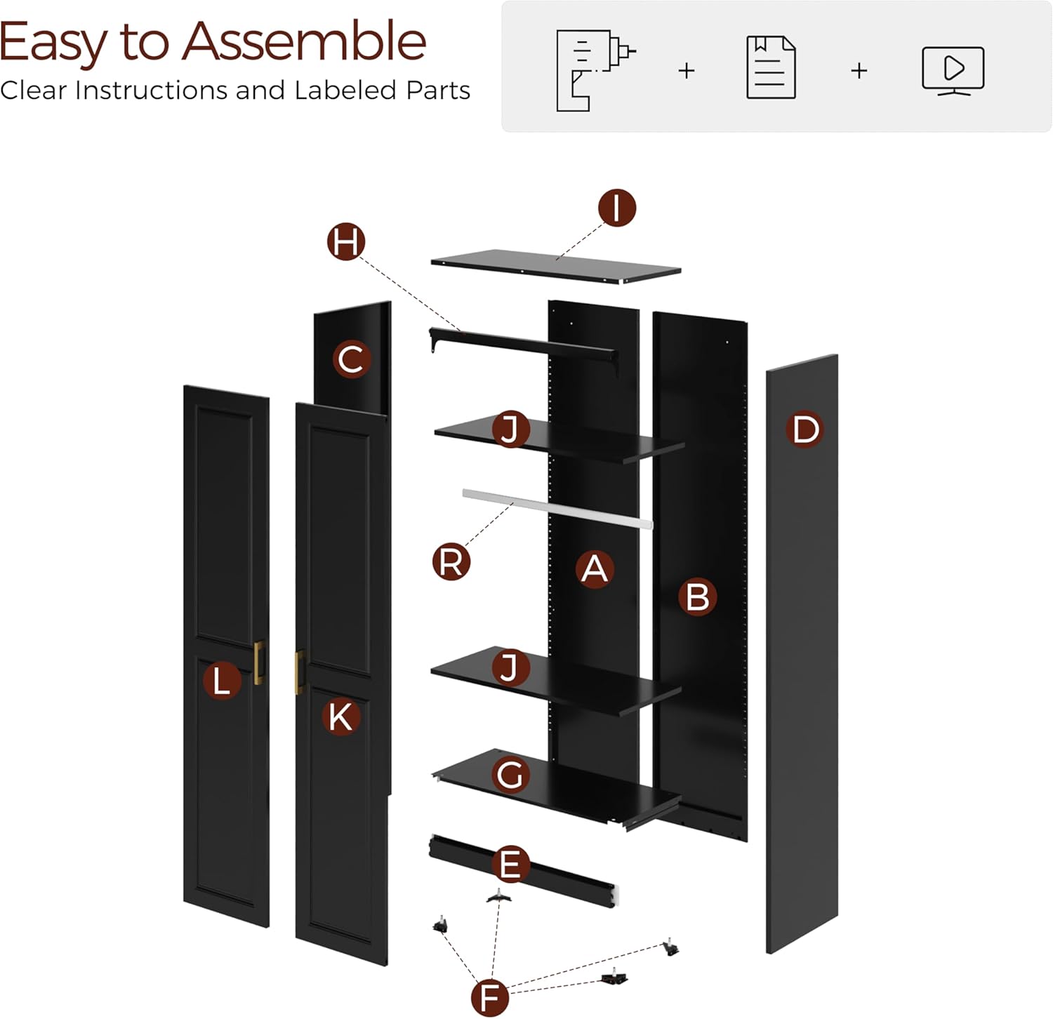- Easy installation: Our wardrobe armoire comes with clear and complete parts and detailed installation instructions. One person can also assemble it quickly. Upgrade your bedroom storage with a high wardrobe!