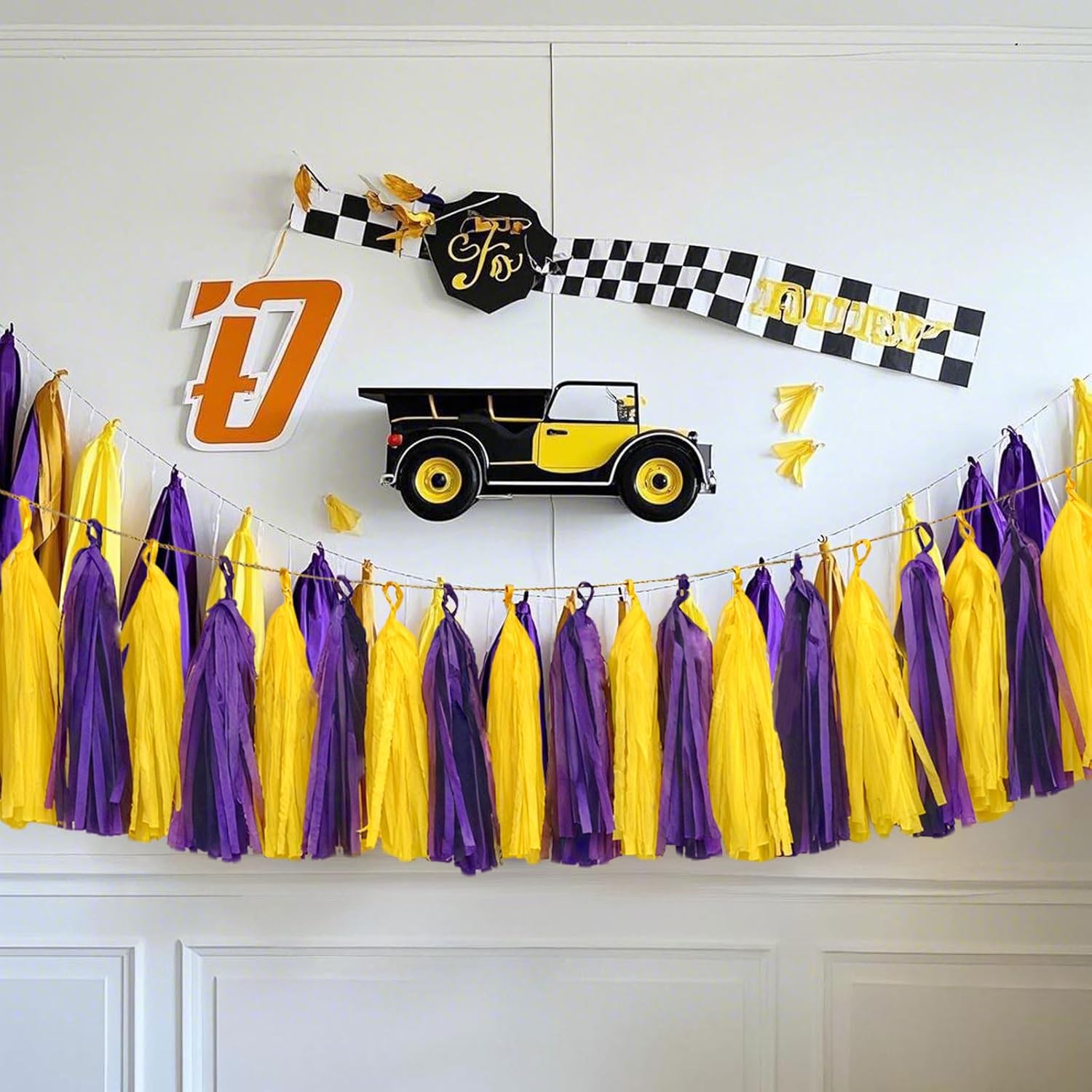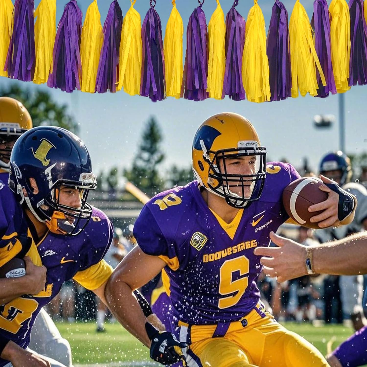 Purple Yellow Paper Tassel, 20 Pack, Party Decorations for Birthday, Baby Shower, Sprot Game,Graduation