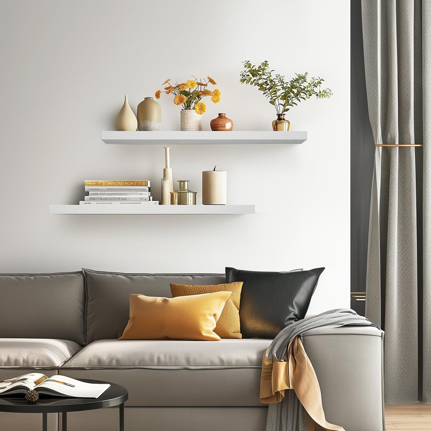 - 𝐒𝐩𝐚𝐜𝐢𝐨𝐮𝐬 & 𝐅𝐮𝐧𝐜𝐭𝐢𝐨𝐧𝐚𝐥 𝐒𝐢𝐳𝐞 – At 𝟑𝟔 𝐢𝐧𝐜𝐡𝐞𝐬 𝐥𝐨𝐧𝐠, these shelves 𝐩𝐫𝐨𝐯𝐢𝐝𝐞 𝐚𝐦𝐩𝐥𝐞 𝐬𝐩𝐚𝐜𝐞 𝐟𝐨𝐫 𝐨𝐫𝐠𝐚𝐧𝐢𝐳𝐢𝐧𝐠 𝐨𝐫 𝐬𝐡𝐨𝐰𝐜𝐚𝐬𝐢𝐧𝐠 𝐢𝐭𝐞𝐦𝐬 𝐰𝐢𝐭𝐡𝐨𝐮𝐭 𝐜𝐫𝐨𝐰𝐝𝐢𝐧𝐠 𝐲𝐨𝐮𝐫 𝐰𝐚𝐥𝐥. Perfect for displaying essentials or decorative accents