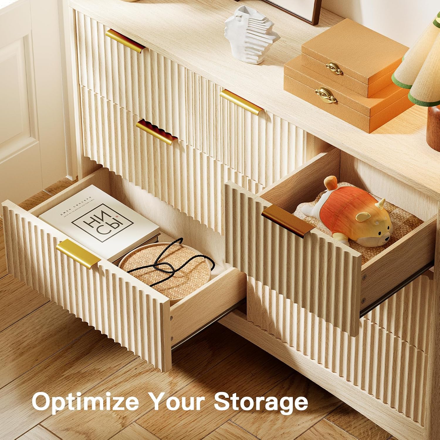 - Modern Fluted Design: Add a touch of sophistication to your space with this tall fluted dresser. The elegant wave-textured drawer fronts, sleek metal handles, and rounded corners blend style and safety—perfect for bedrooms, living rooms, or entryways.