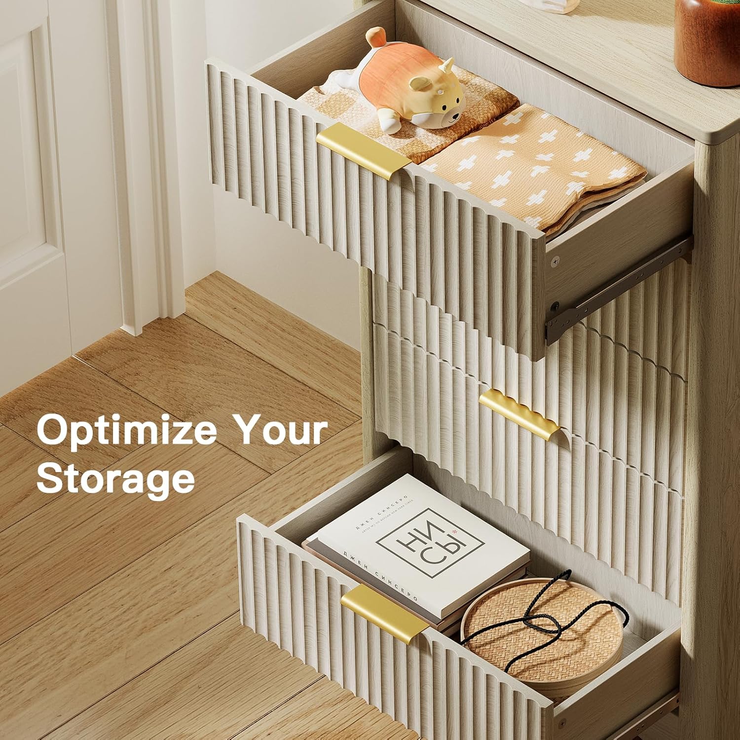 - 【Family-Safe, Durable & Eco-Friendly Design】Crafted from CARB P2-certified engineered wood, this fluted dresser is built to withstand daily life while prioritizing your family's safety. Rounded corners reduce accidental bumps, and the included anti-tip kit ensures stability even in busy homes with kids and pets. Reinforced construction supports heavy loads—each drawer holds up to 22 lbs., and the sturdy top bears up to 176 lbs. Scratch-resistant and waterproof, it's an eco-conscious, low-maintenance piece you'll rely on for years