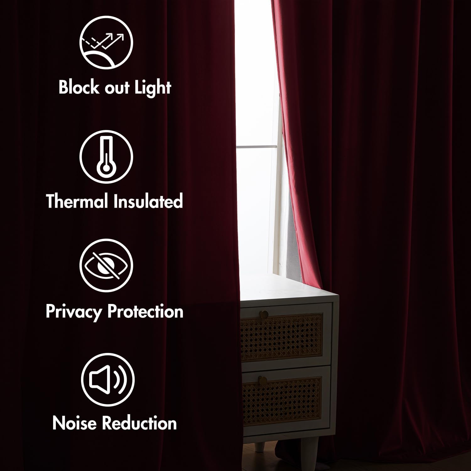 - FUNCTION: Craft from thick velvet, curtains can block 80% of the sunlight. Also, these drapes can keep heat down in summer or keep cold out in winter to achieve smart energy saving. And these panels can provide privacy, reduce noise, which help to create a quiet sleeping environment.
