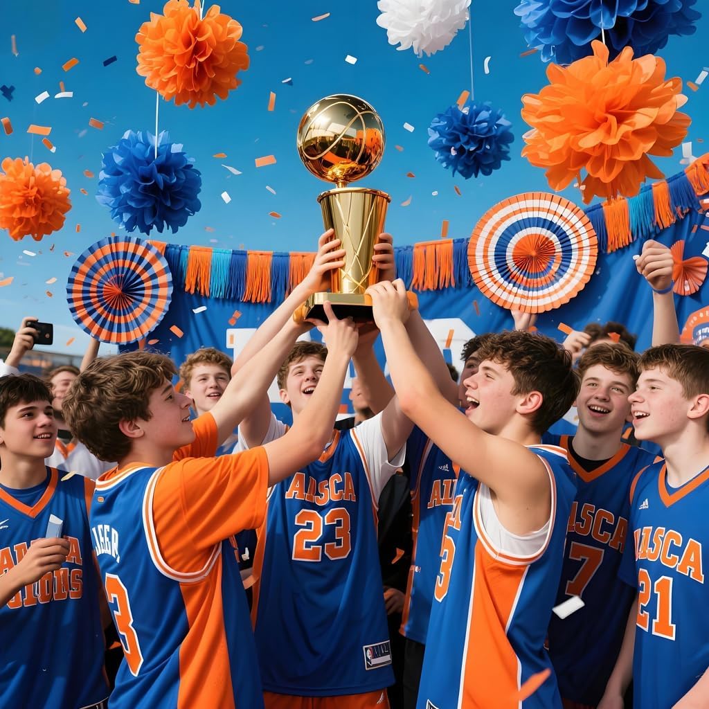 Orange and Blue Paper Tassel, 20 Pack, Party Decorations for Birthday, Baby Shower, Sprot Game,Graduation