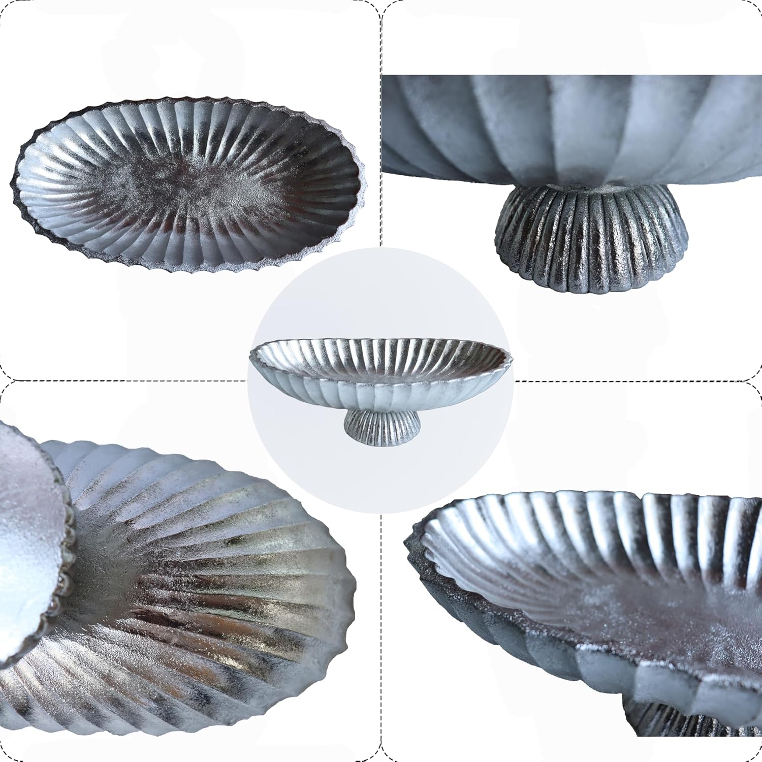 14.5" Large Decorative Long Bowl - Silvery Fluted Scalloped Decorative Bowls for Home Decor - Ruffle Decor,Stylish Key Bowl for Entry Table,Decorative Fruit Bowls for Kitchen Counter