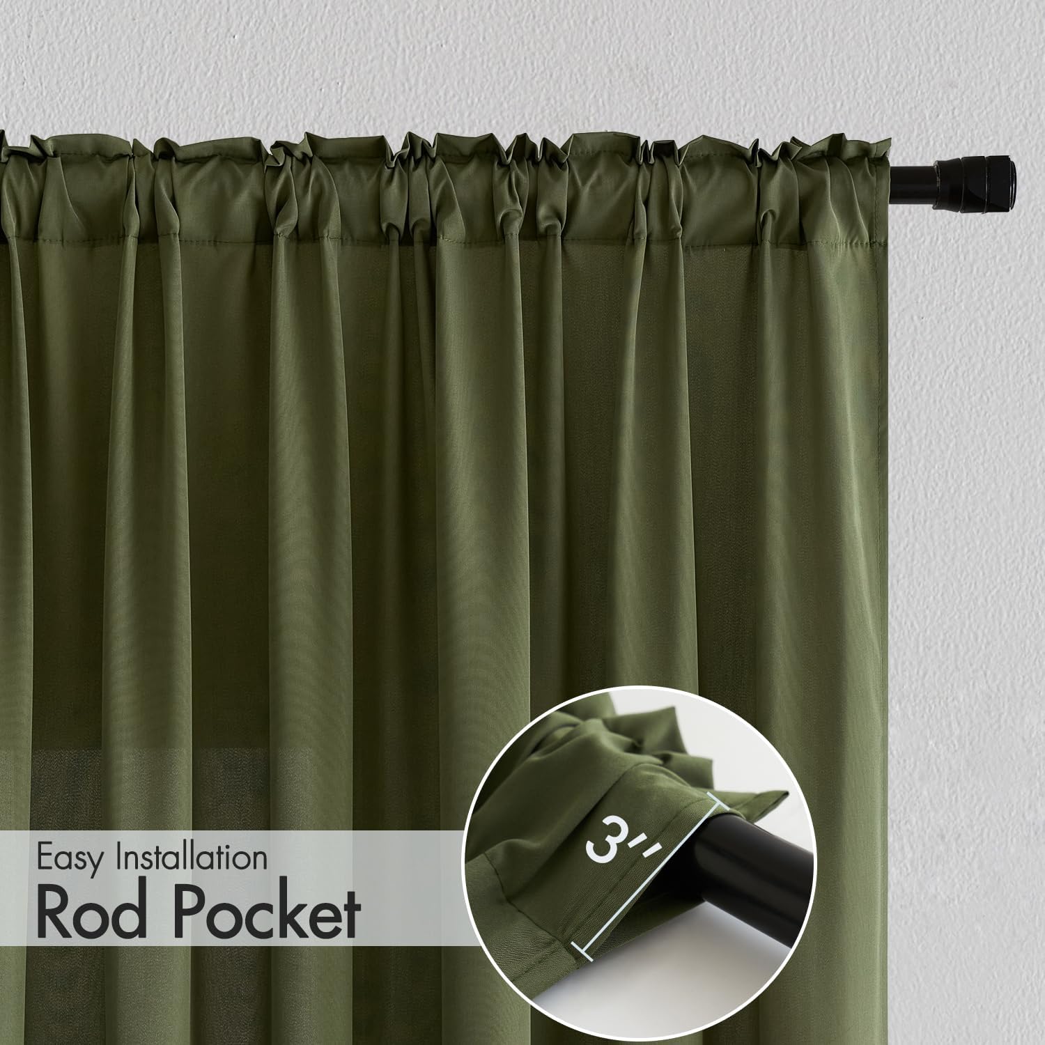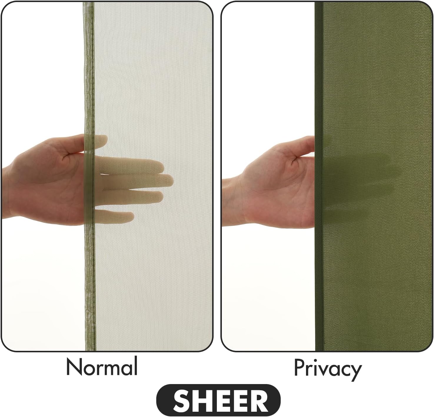 MIULEE Olive Green Privacy Sheer Curtains That Let Light in 63 Inches Long Non-See-Through Semi Sheer Curtain Light Filtering Window Curtains Drapes for Living Room Bedroom 2 Panels Set 42 X 63