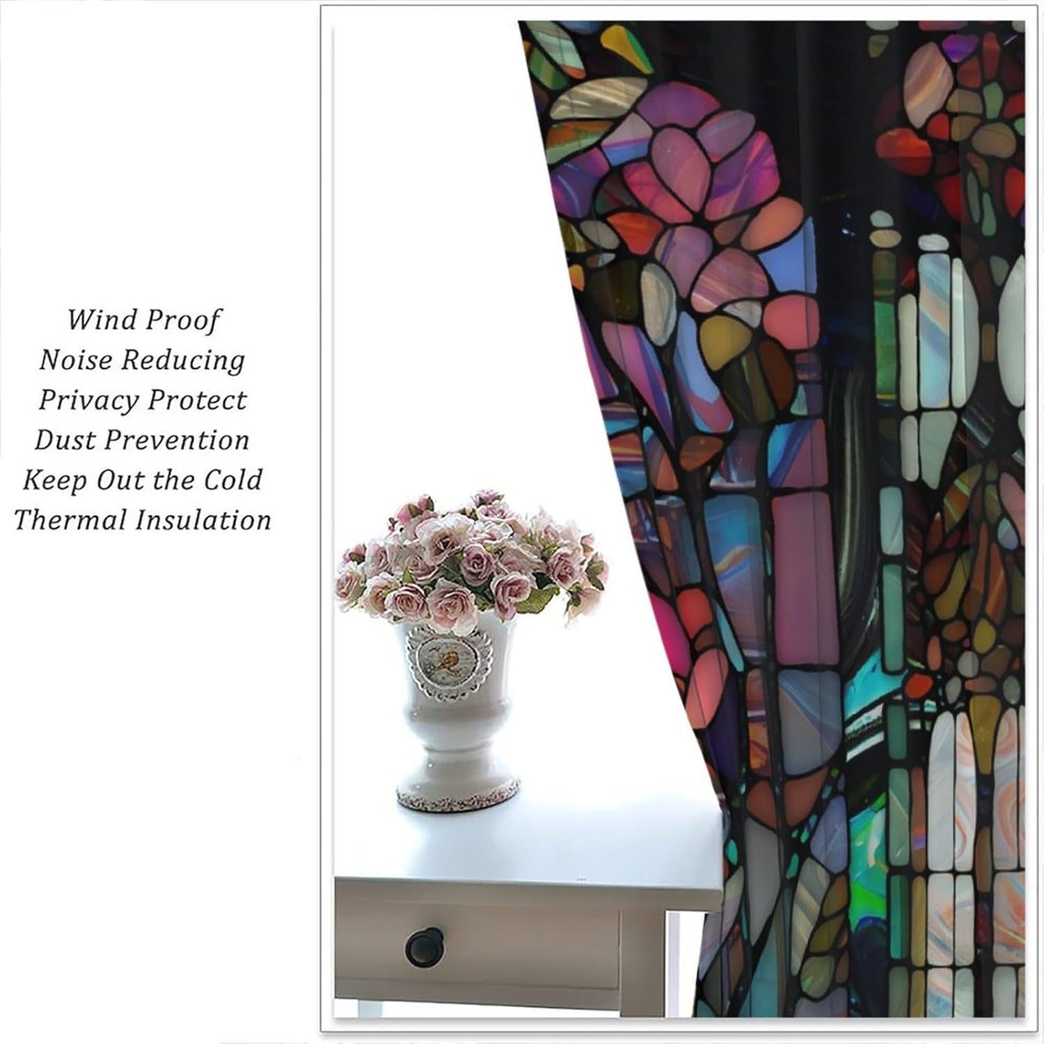 Stained Glass Curtains,Vintage Colorful Abstract Art Home Decor Drapes for Bedroom Living Room Kitchen Window Treatment 2 Panels Set Total Size 52" W X 84" L Inch