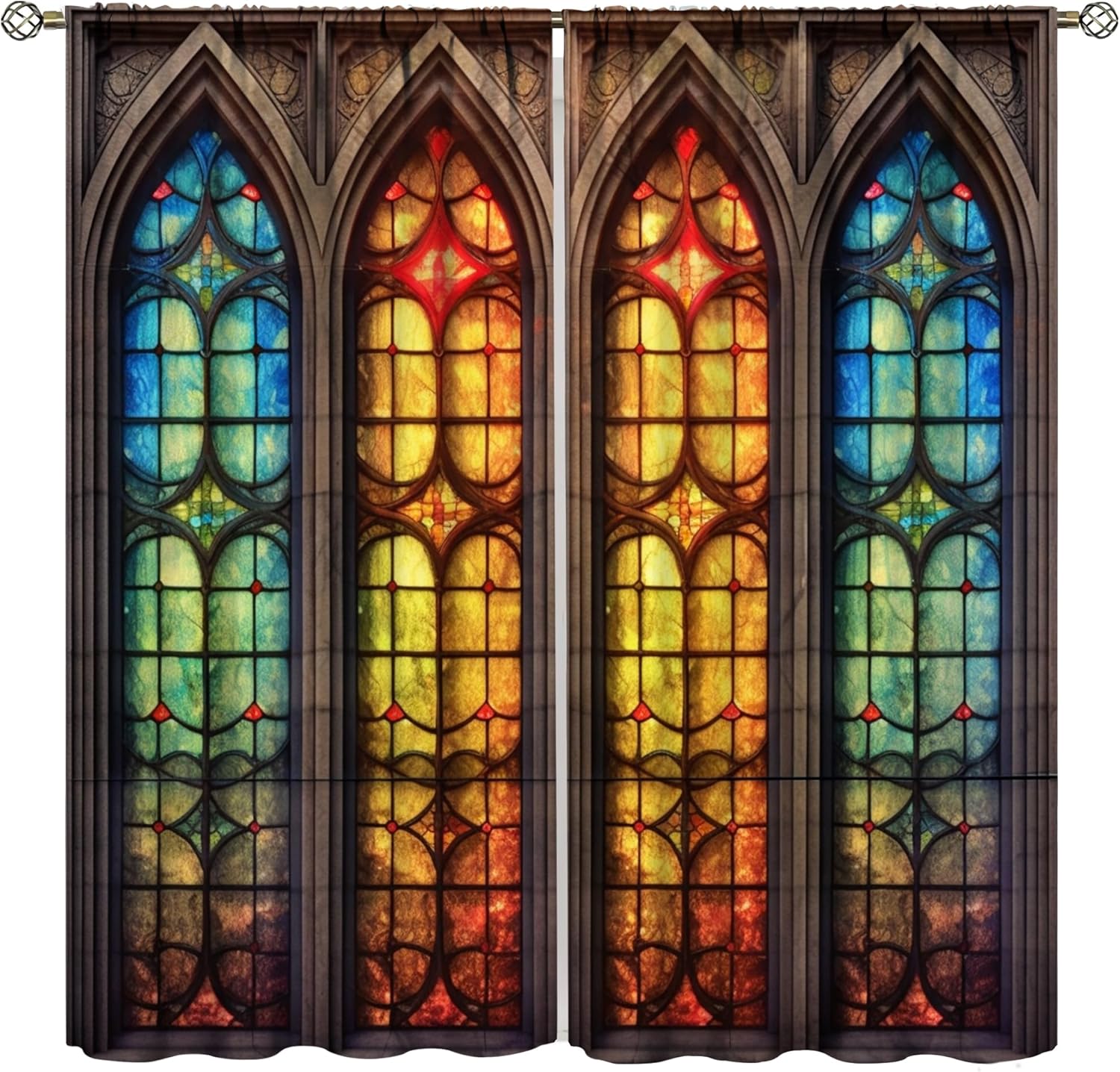 Stained Glass Curtains,Mid Century Vintage Style Abstract Art Home Decor Drapes for Bedroom Living Room Kitchen Window Treatment 2 Panels Set Total Size 42" W X 54" L Inch