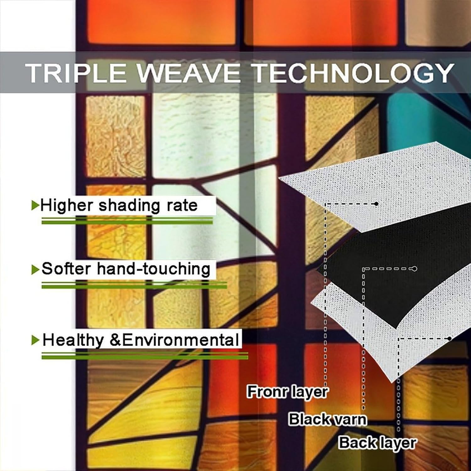 Stained Glass Curtains,Retro Abstract Colorful Geometry Textures Art Home Decor Drapes for Bedroom Living Room Kitchen Window Treatment 2 Panels Set Total Size 42" W X 54" L Inch