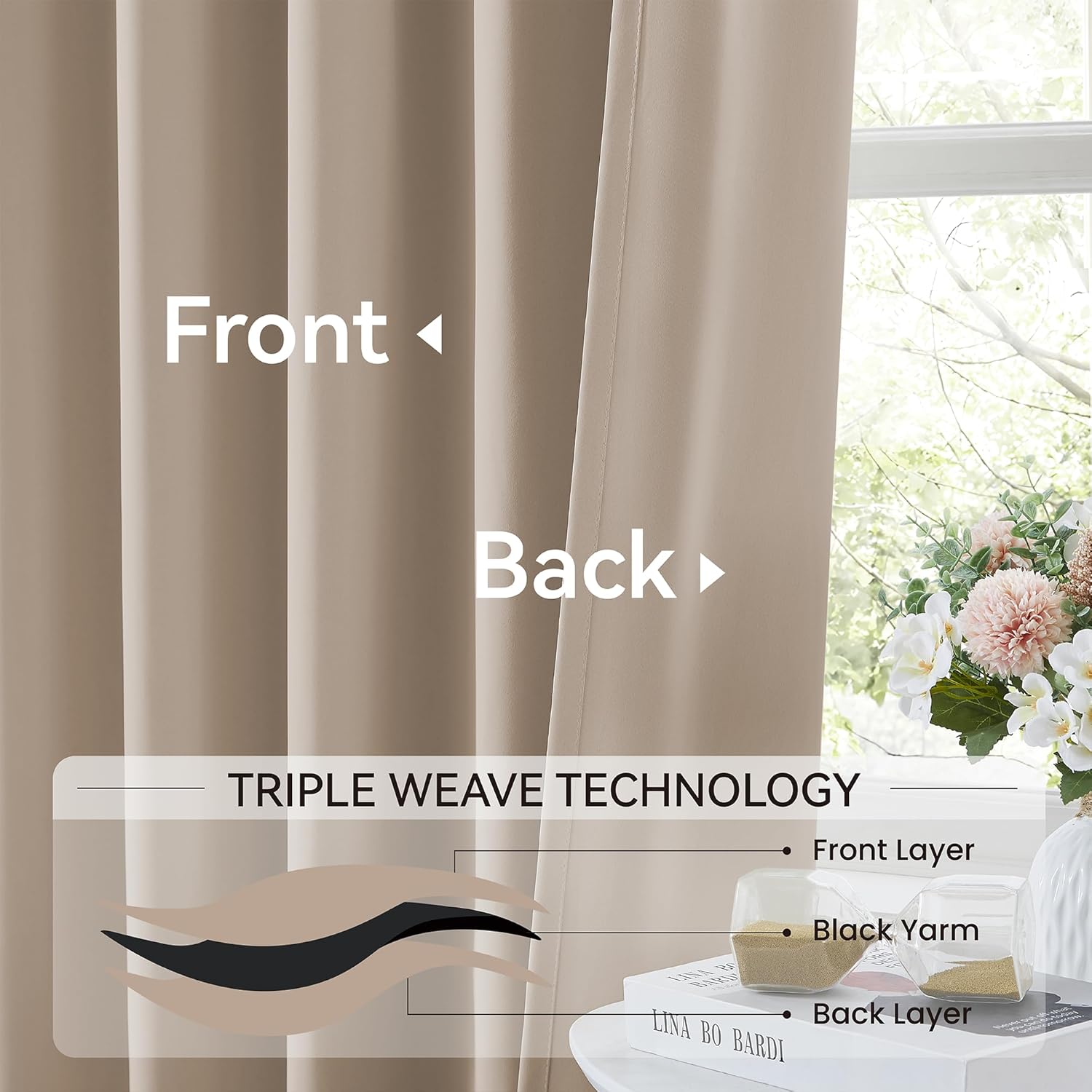 - Room Darkening & Thermal Insulated:Crafted to block out up to 85%–95% of sunlight, these blackout curtains help darken the room, reduce glare, and provide enhanced privacy—ideal for napping, movie nights, or light-sensitive settings. The thermal insulation offers excellent energy saving performance by keeping rooms warmer in winter and cooler in summer. These curtains also provide sound dampening benefits, helping to reduce outside noise for a more peaceful environment.