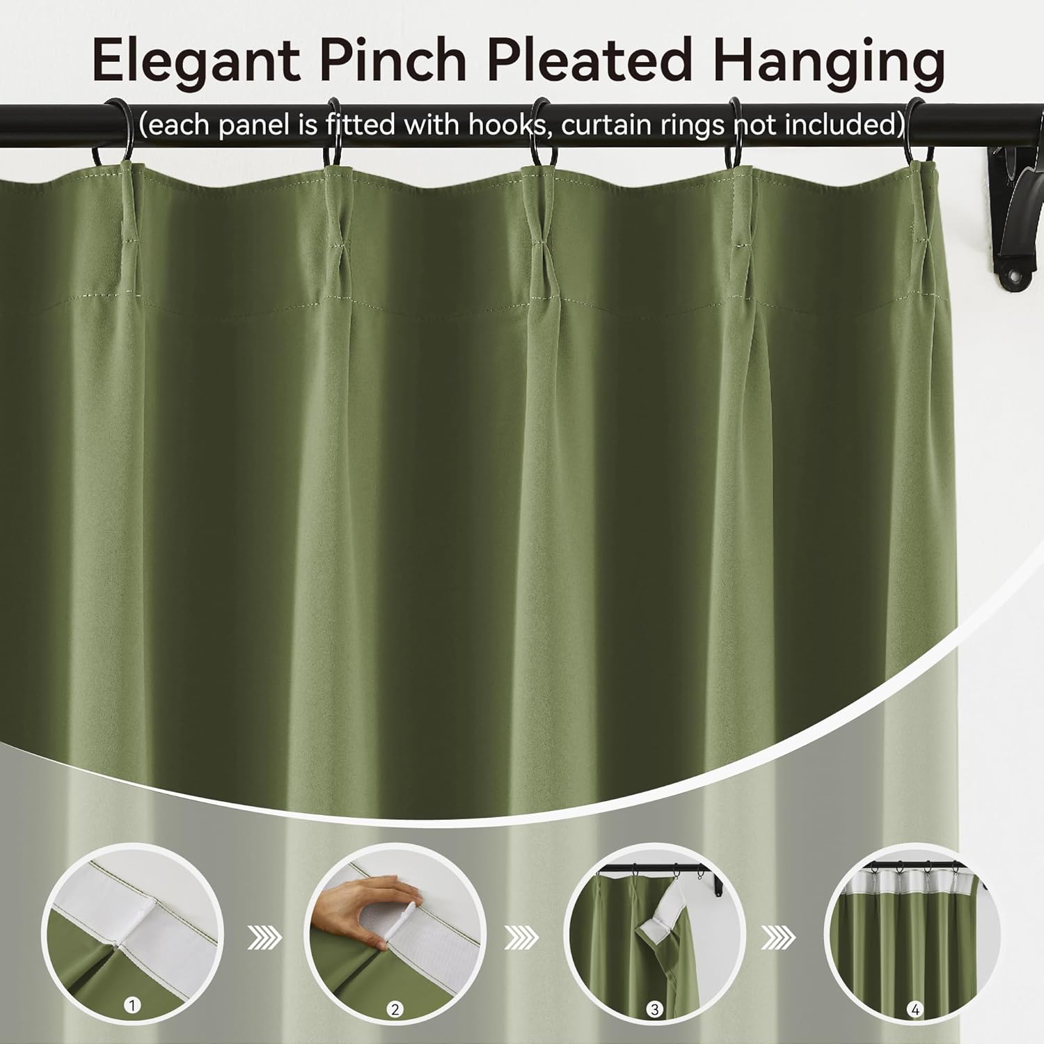 KangBang 2 PCs Sage Green Pleated Window Curtain Panels for Hall Windows, Pinch Pleat Black Out Thermal Insulated Curtains & Drapes Ceiling to Floor for Villa Cottage with Hooks Track System,40x120