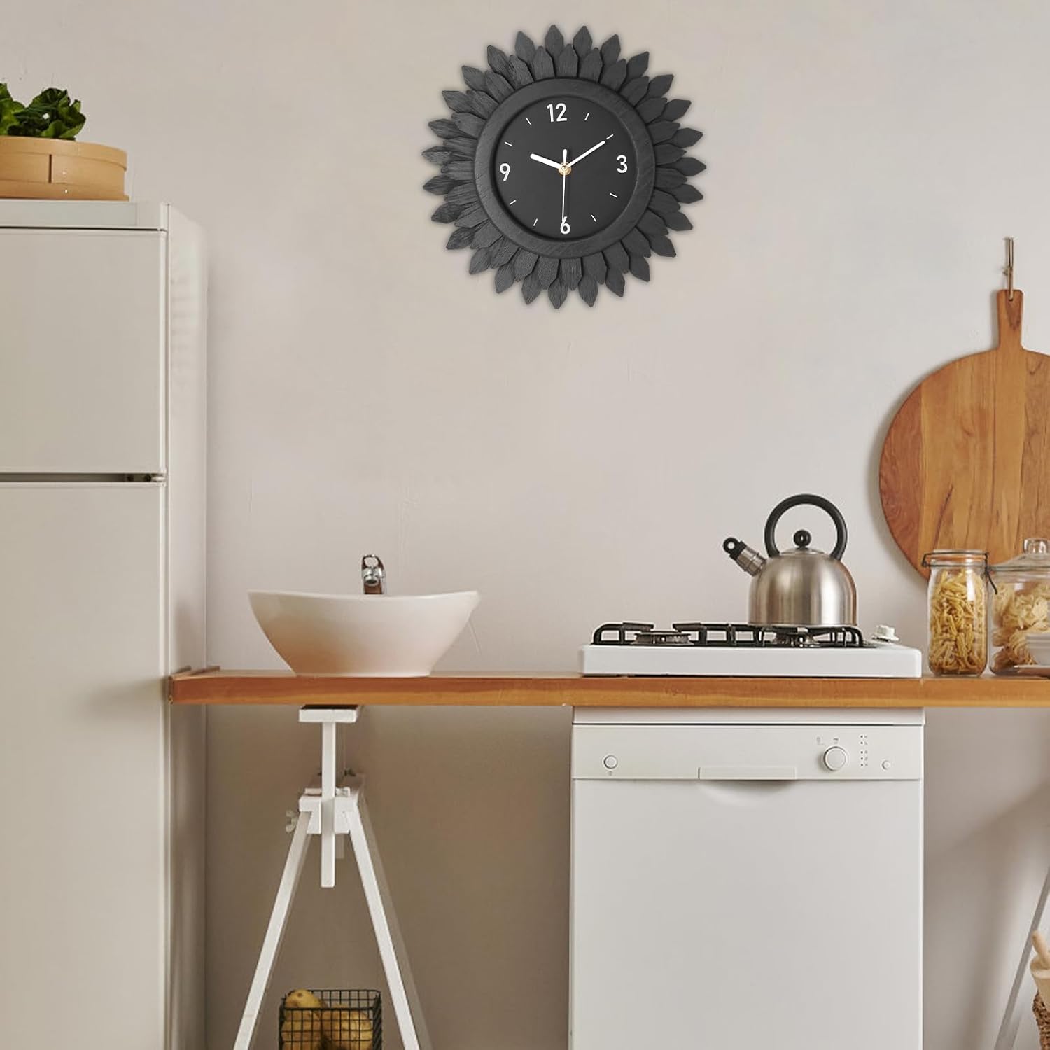 - Boho Wall Decor Clock: Inspired by the sunburst of Bohemian style, this modern wall clock face design is unique and eye-catching, 2 tier wood sunburst looks like the "sun". With a black wooden case, white hour, minute and seconds hands and large white numbers, this decorative wall clock is easy to read from a distance