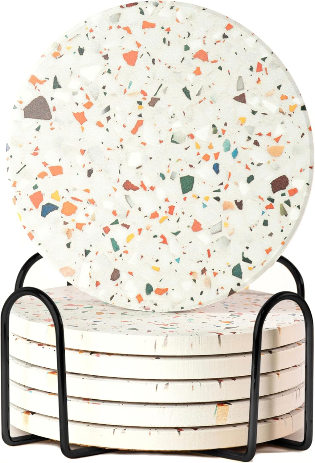 - Perfect Fit for Every Cup: This ceramic coasters set of 6 features a 10cm diameter that fits most mugs, tumblers, and glasses. Ideal as cup coasters or desk coasters, each absorbent coaster catches drips and condensation to protect surfaces in any setting—home, bar, or office.