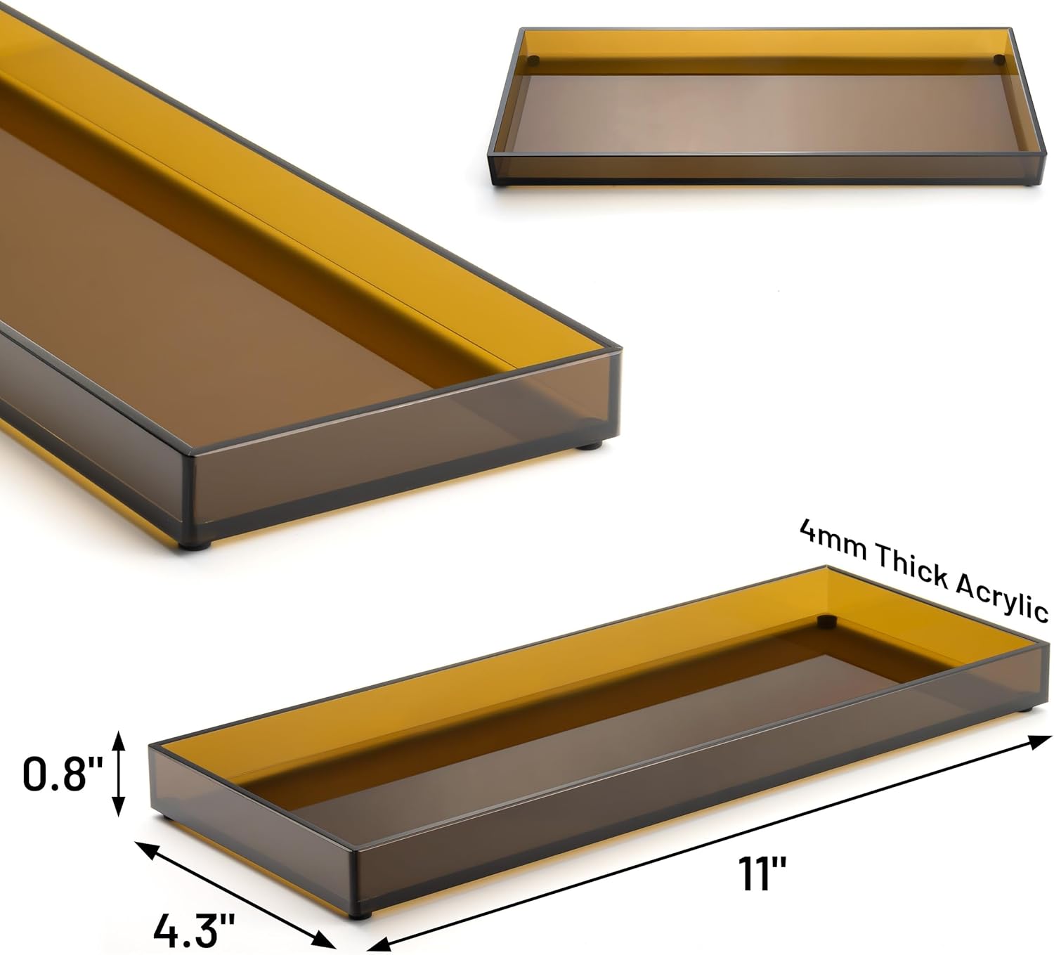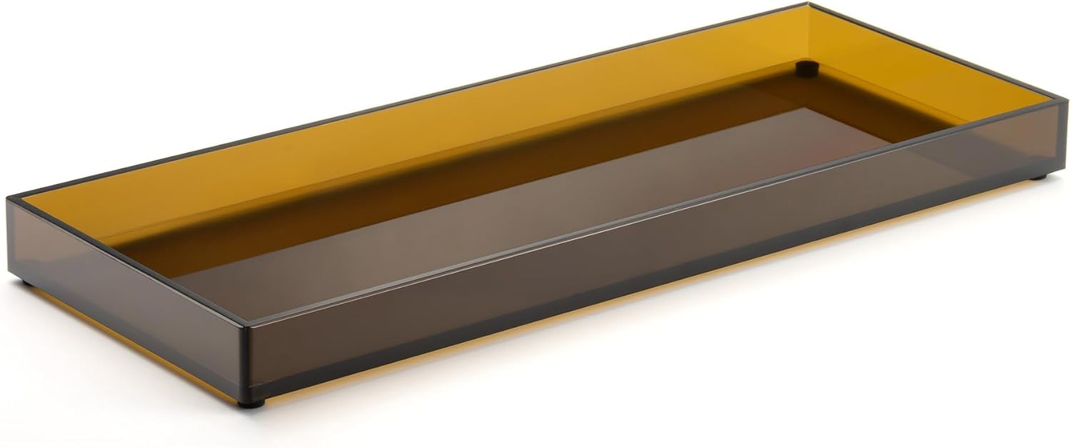 11" x 4.3" Bathroom Vanity Tray Acrylic Decorative Counter Organizer for Soap Dispenser, Perfume, Candle, Makeup - Rectangle Tray for Sink, Toilet Tank, Dresser Home Decor, Small Brown