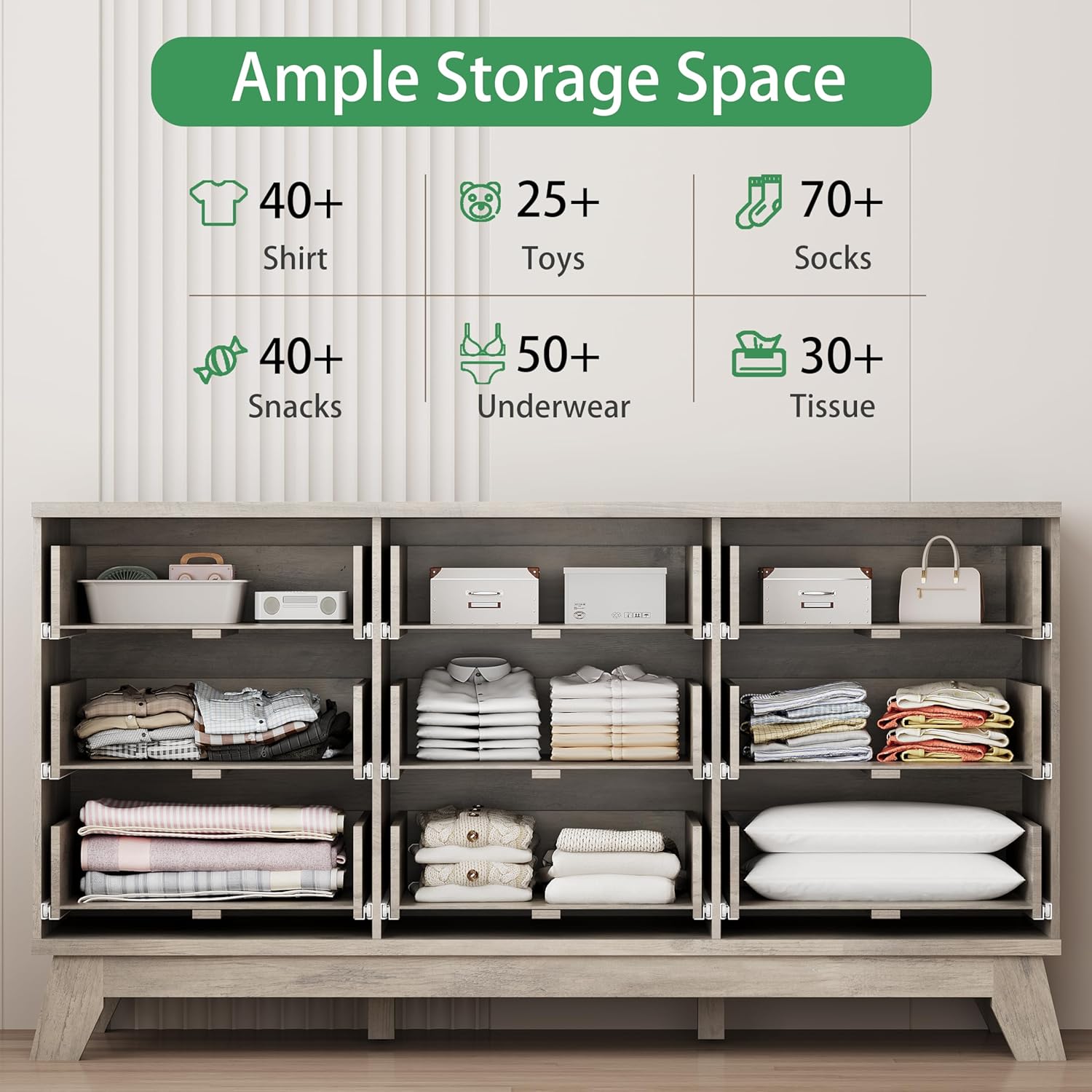 - 【Versatile Wood Dresser】Except for being wooden dresser in your bedroom or as a console table in your living room, this storage cabinet also can be used as nightstand or side table. This long dresser could easily fit in various spaces such as living room, bedroom, hallway, entryway and closet. It is an ideal choice for small spaces such as apartment or dorm room