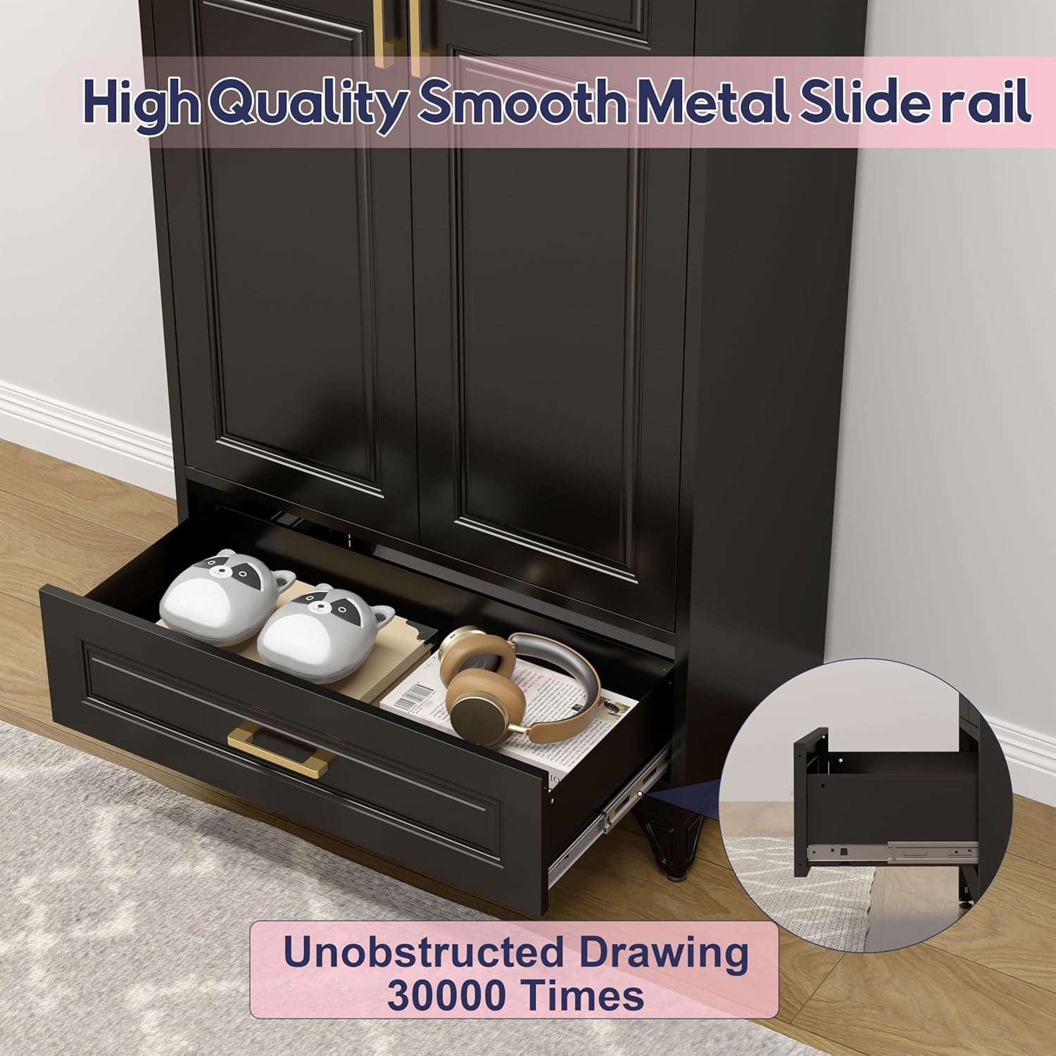 Pantry Kitchen Cabinet with Drawer, 75" Tall Pantry Storage Cabinet, Metal Storage Cabinets with Doors and Shelves, Large Freestanding Cupboard for Dining Room, Assembly Required, Black