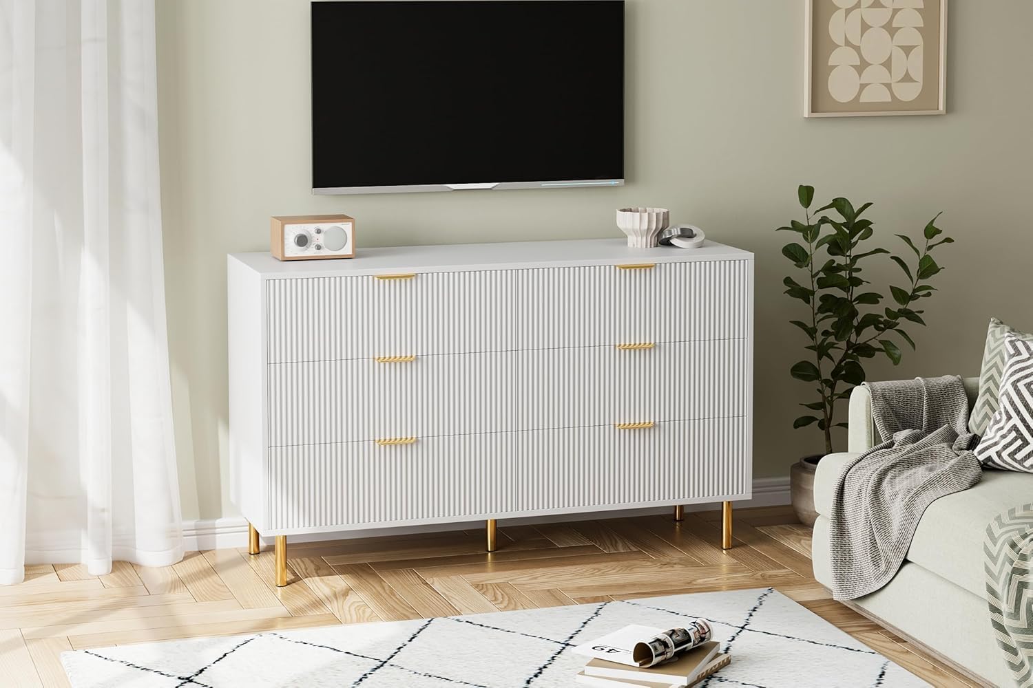 - Stylish Modern Design: Featuring a sleek, contemporary look, GAOMON storage dresser combines the unique groove design with the golden base and handle. Use it alone or with other nightstands, or combine it with a tall cabinet for a great option. A great fusion of form and function for your home.