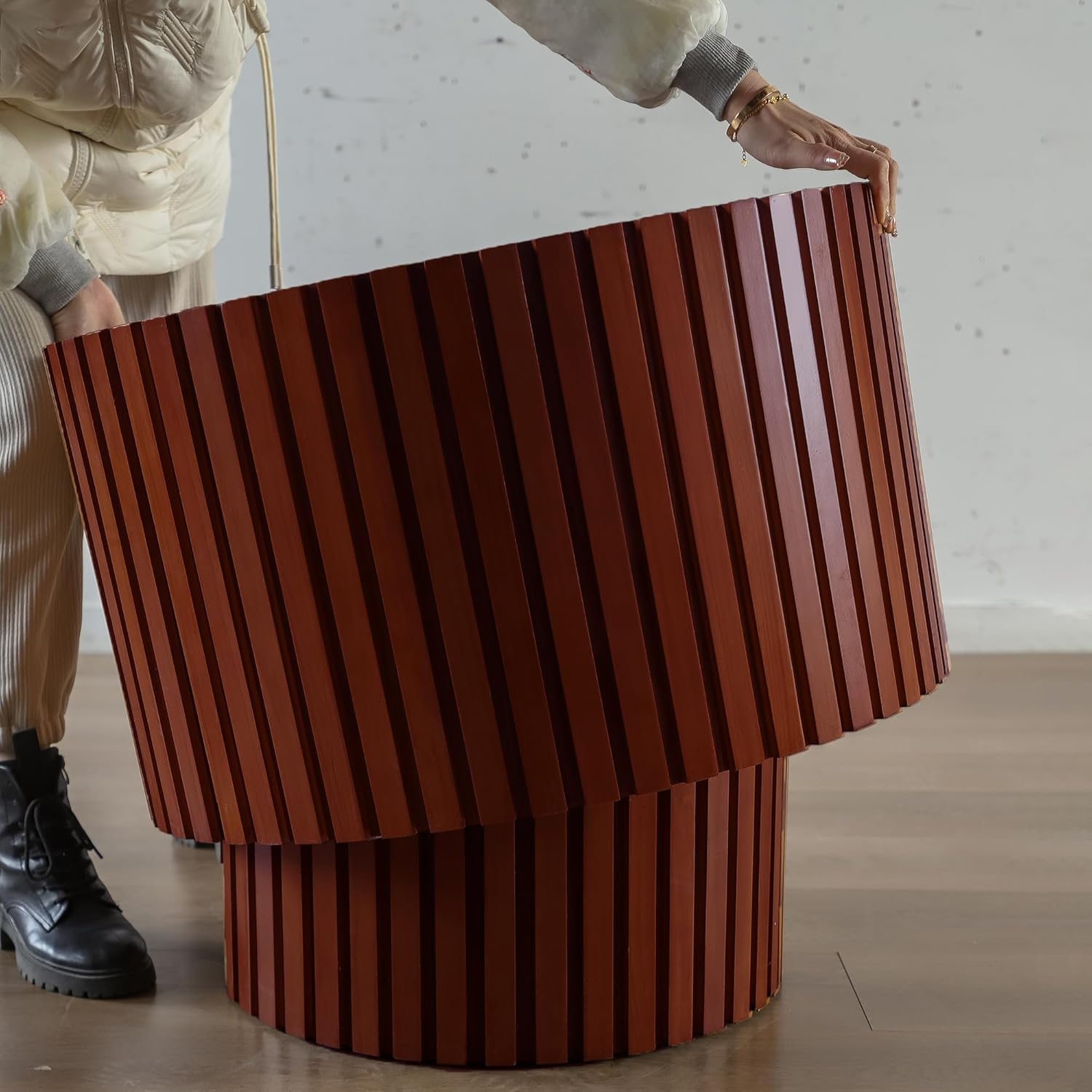 Nesting Round Coffee Table Set of 2, 27.56" Fluted Circle Accent End Table, Morden Drum Side Table, Wooden Center Table for Living Room, Fully Assembled - Walnut