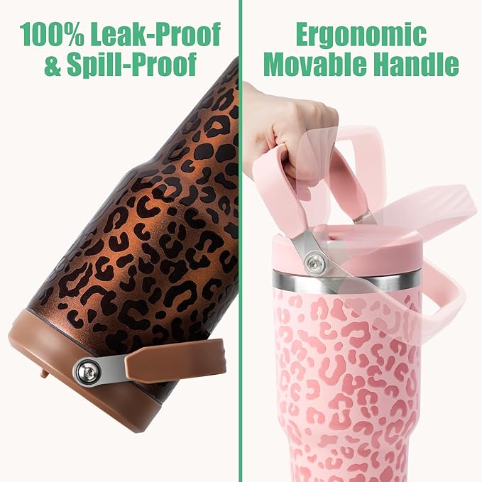 30 oz Tumbler with Lid and Straw, Stainless Steel Vacuum Insulated Tumblers with Flip Straw and Top Handle, Reusable Insulated Water Bottle for Home, Office, Leakproof, Fit in Cup Holder