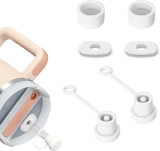 2 Set Spill Stoppers for Stanley Cup 20oz/30oz/40oz/64oz, Leak Proof Accessories for Stanley Tumbler with Straw Cap and Square Pad and Round Cover (White, 2)